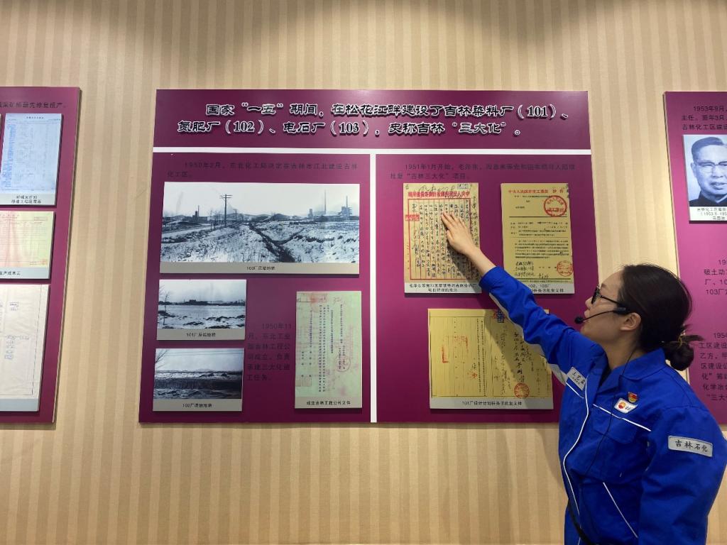 来到陈列馆,大家仔细聆听工作人员讲述“共和国化工长子”成立以来的发展转型历程和在中国化工产业做出的巨大贡献,多个“新中国第一”将吉化公司牢牢镌刻在新中国发展的功勋册里。作为新中国第一个大型化学工业基地,吉林石化经过了“一五”时期艰苦创业、改革开放后结构大调整、新时代加速转型升级等几个重要阶段,在持续创新、接续奋斗中不断焕发出新的发展活力。