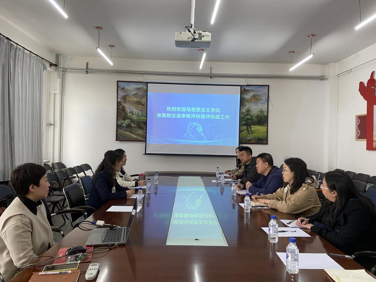 为扎实做好新一轮本科教育教学审核评估迎评工作,切实做好学院自评自建工作,为进一步落实立德树人根本任务,进一步推进马克思主义学院本科教育教学审核评估工作,4月10日下午,马克思主义学院一行6人赴外国语学院,调研本科教育教学审核评估工作,开展交流座谈。交流座谈会在外国语学院会议室举行,外国语学院副院长李冰及部分教研室主任参加了会议。