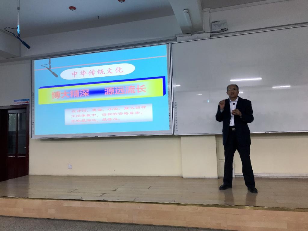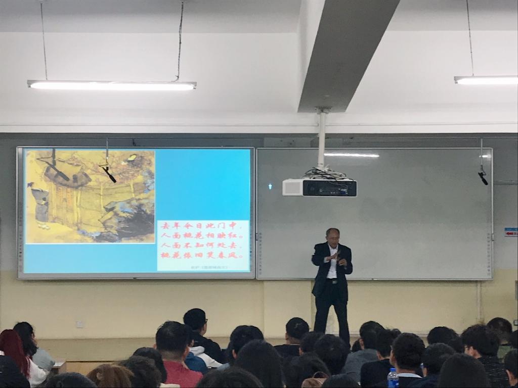 中国古诗词既是中华文明在语言文字上的浓缩精华,更是几千年来中国人精神风貌的展示。钮忠跃讲述了中国古诗词的韵味和意境,将同学们带入了中华传统诗词的美妙世界,更加直观地让学生们感受到诗词的魅力。学生在重温中华经典诗词的同时,也再次领略了中华优秀传统文化的魅力。