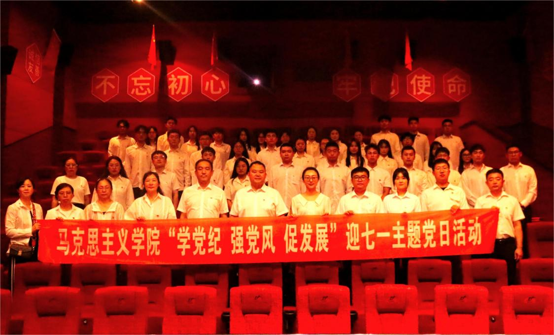 为庆祝中国共产党成立103周年,扎实开展党纪学习教育,6月26日,马克思主义学院党总支联合全国样板党支部-经济管理学院学生第三党支部共同开展“学党纪、强党风、促发展”迎七一主题党日活动暨行走的思政课。活动由马克思主义学院党总支书记李超主持,经济管理学院学生第三党支部书记王宇晨、思政课教师、经济管理学院辅导员及学生党员参加主题党日活动。