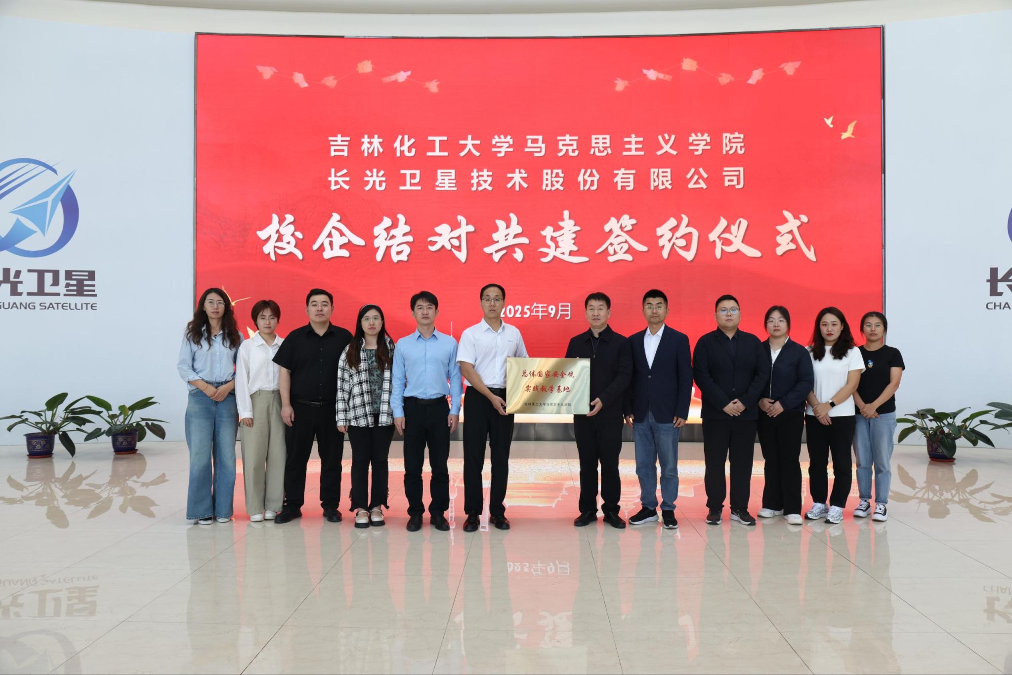 近日,吉林化工大学马克思主义学院与长光卫星技术股份有限公司签署“大思政课”实践教学基地协议,并揭牌“总体国家安全观实践教学基地”,扎实推进思政课改革创新,构建校企联合育人新模式。
