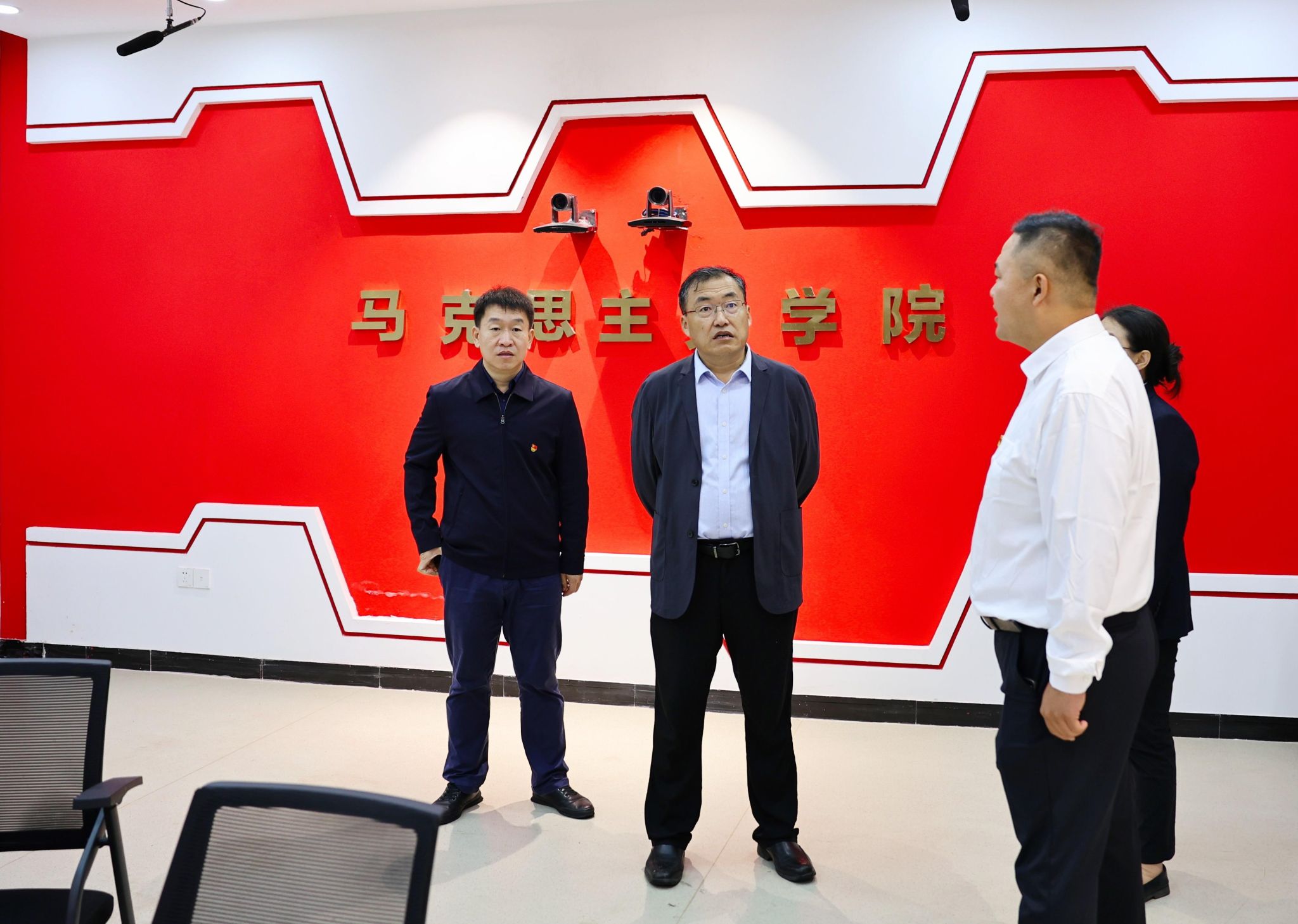 会前,张明耀书记一行实地查看了党建思政VR实践教学中心、学习馆、集体备课室,详细了解建设与运行情况,并深入马克思主义原理、毛泽东思想和中国特色社会主义理论体系概论、习近平新时代中国特色社会主义思想概论等教研室,同教师们亲切交谈,询问教师们的教学、科研等工作情况,鼓励老师们大力弘扬教育家精神,潜心育人、再创佳绩。