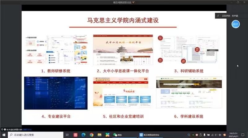 为贯彻落实《普通高校思政课教师队伍建设规划(2025-2027年)》文件精神,进一步推动马克思主义学院建设,提高思政课教师运用数智化教学手段的能力,4月21日,学院召开“智慧马院一体化建设”交流研讨会,学院党总支书记李超、院长李海涛、副院长刘嘉任及教师代表参加会议,超星集团产品经理朱宇涵、吉林分公司经理杨玉琦受邀出席,会议由副院长李智主持。
