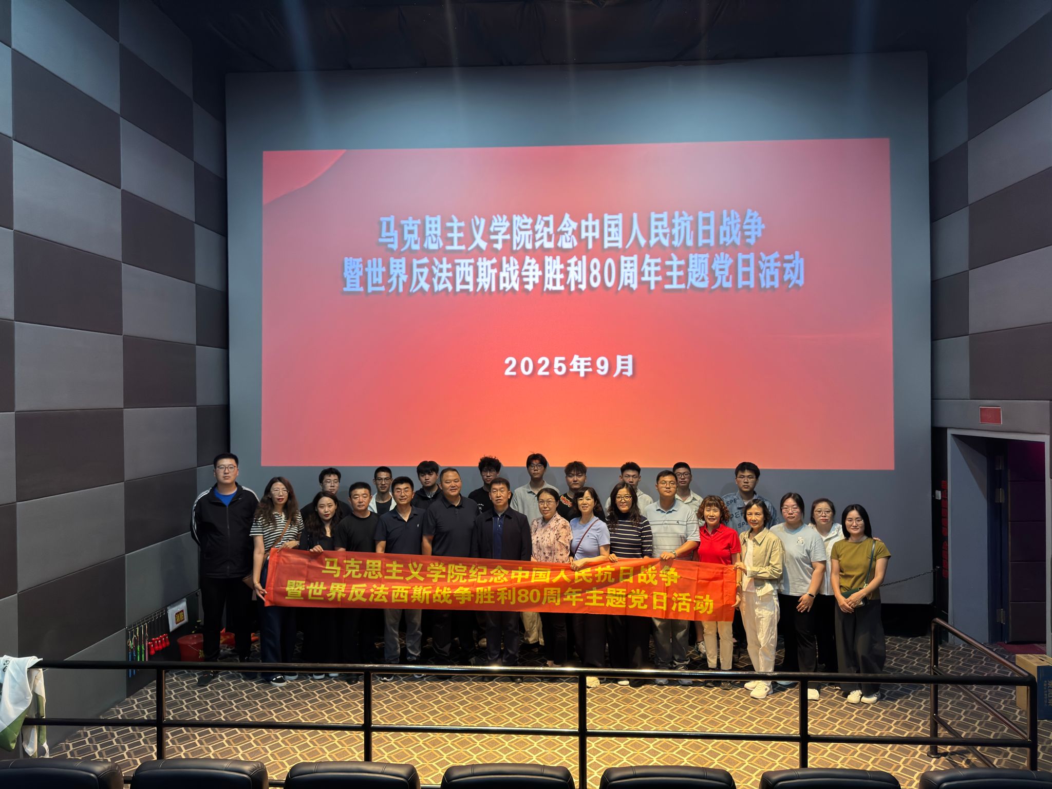 为深切缅怀抗战英烈,弘扬伟大抗战精神,厚植师生爱党爱国情怀,在中国人民抗日战争暨世界反法西斯战争胜利80周年之际,9月10日下午,马克思主义学院党总支组织教师党员及学生代表集体观看抗战题材影片《生还》,开展“伟大抗战精神融入思政课”集体备课会。