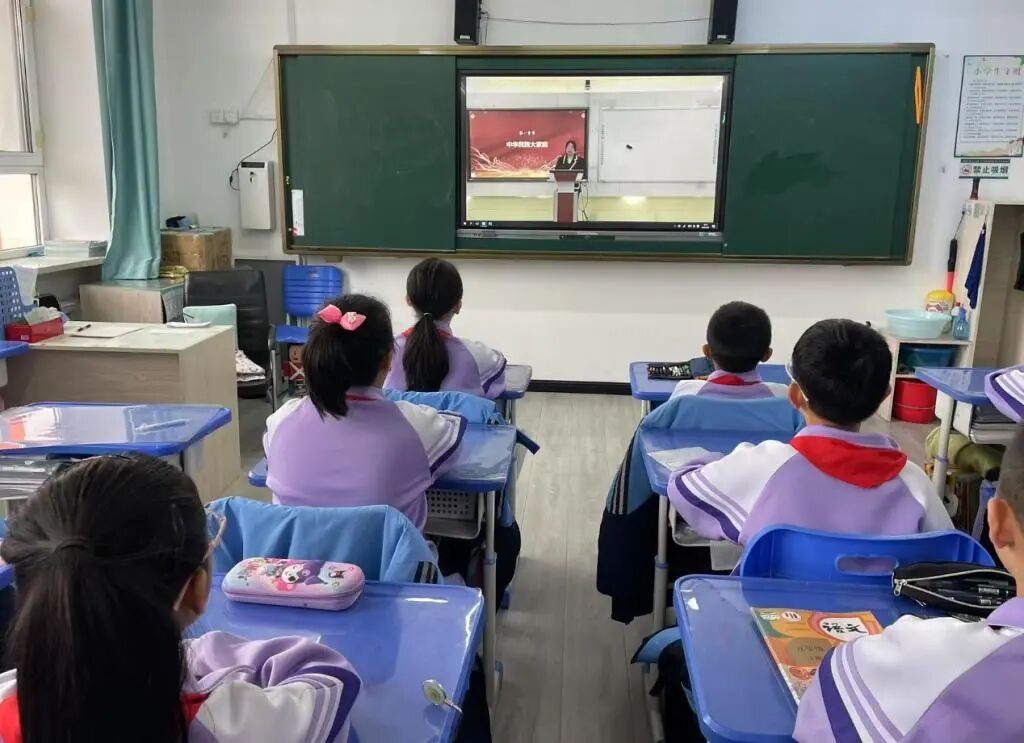 双吉小学的同学们正在观看学习